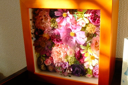 大切なお花を立体のボックスに敷き詰め形に残します。